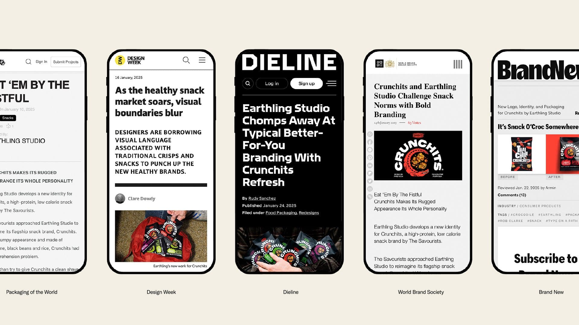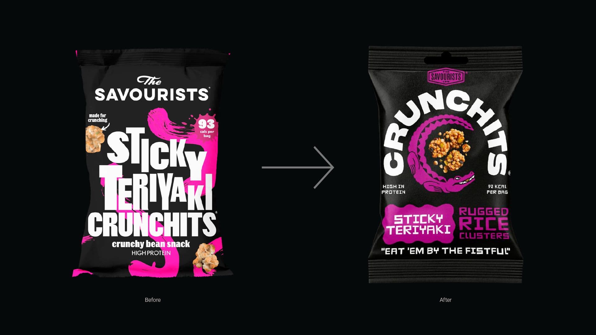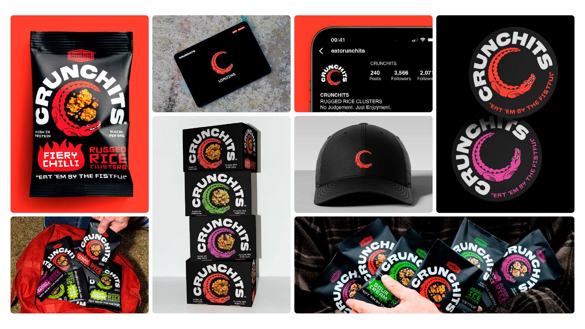 The Croc quickly became the visual engine of the rebrand. He unified the tone of the identity, added personality across every touchpoint, and gave Crunchits a memorable figure that stood out in a crowded category. The character helped position Crunchits as a snack with real crunch credibility and delivered a bold, distinctive face for the brand’s new direction.