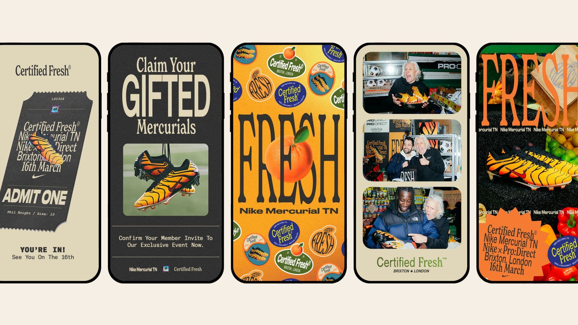 Our concept, ‘Certified Fresh’, playfully reinterpreted the product’s vibrant colourways and street-level heritage through the lens of a London food market. We transformed a traditional greengrocer stall into a bold streetwear-meets-culture experience, hosted by football personality Jimmy Bullard, to root the moment in local energy.